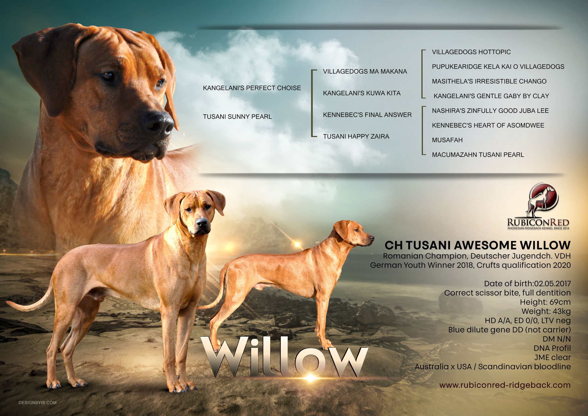 Menschen und Artgenossen machen ihn zu einer idealen Wahl für unsere Zucht. Wir sind sehr dankbar, dass wir Willow haben und freuen uns über seine wunderschönen Nachzuchten.